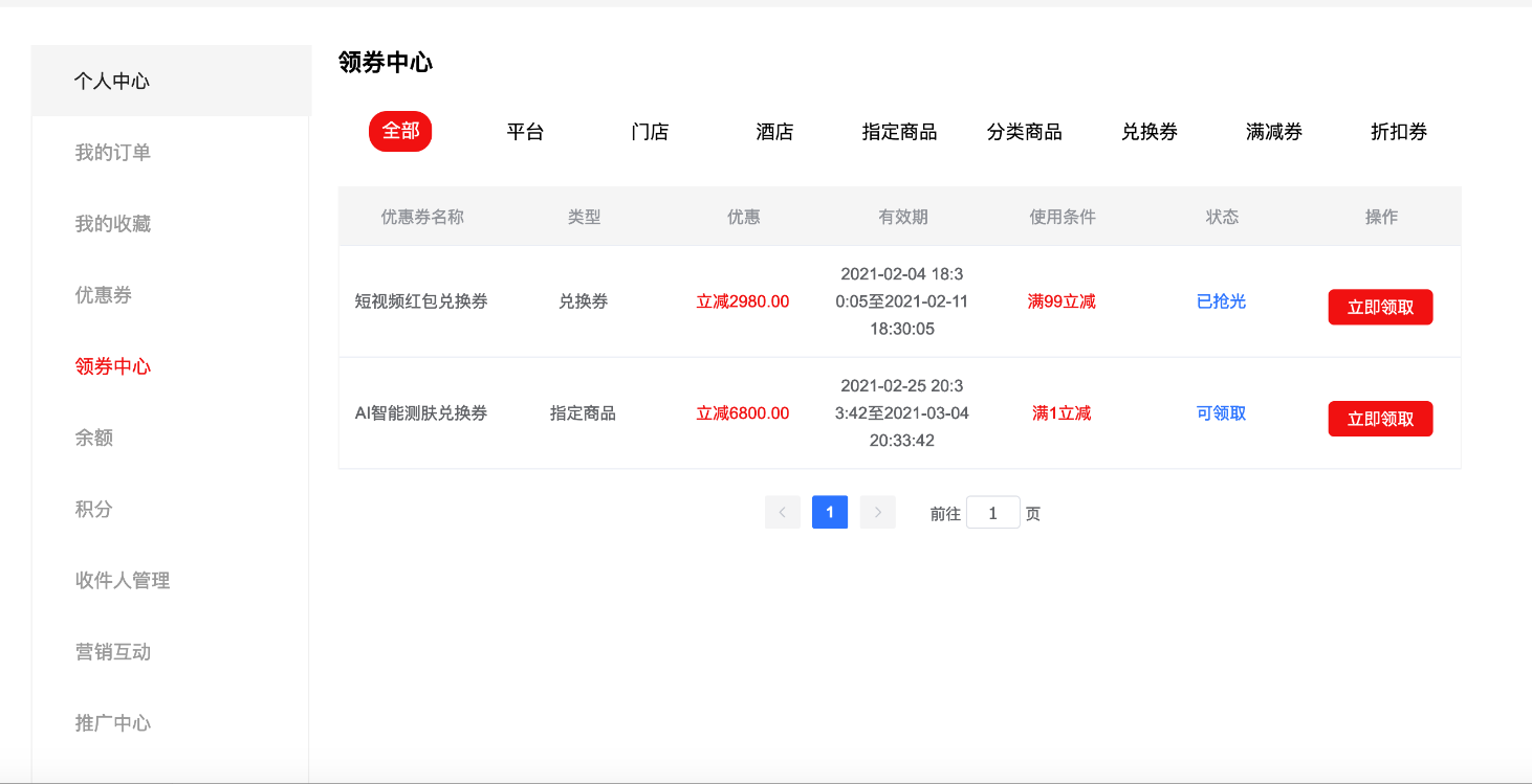 注意:因商城系统功能较多,故PC端商城页面只做了部分主要功能,其他未实现功能,将继续使用原H5页面样式。