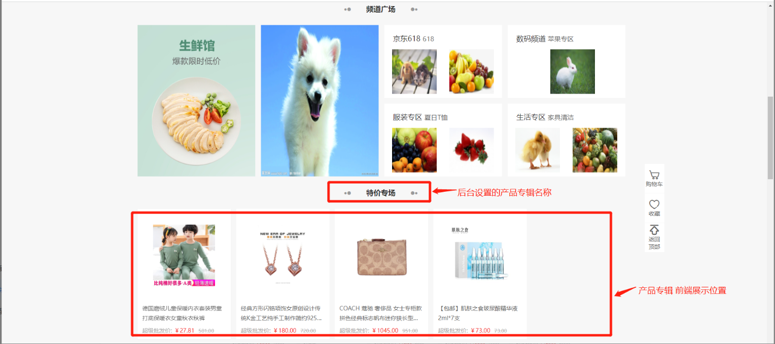 中间最大的图片就是轮播图,可在后端进行设置,包括点击之后的跳转链接等。