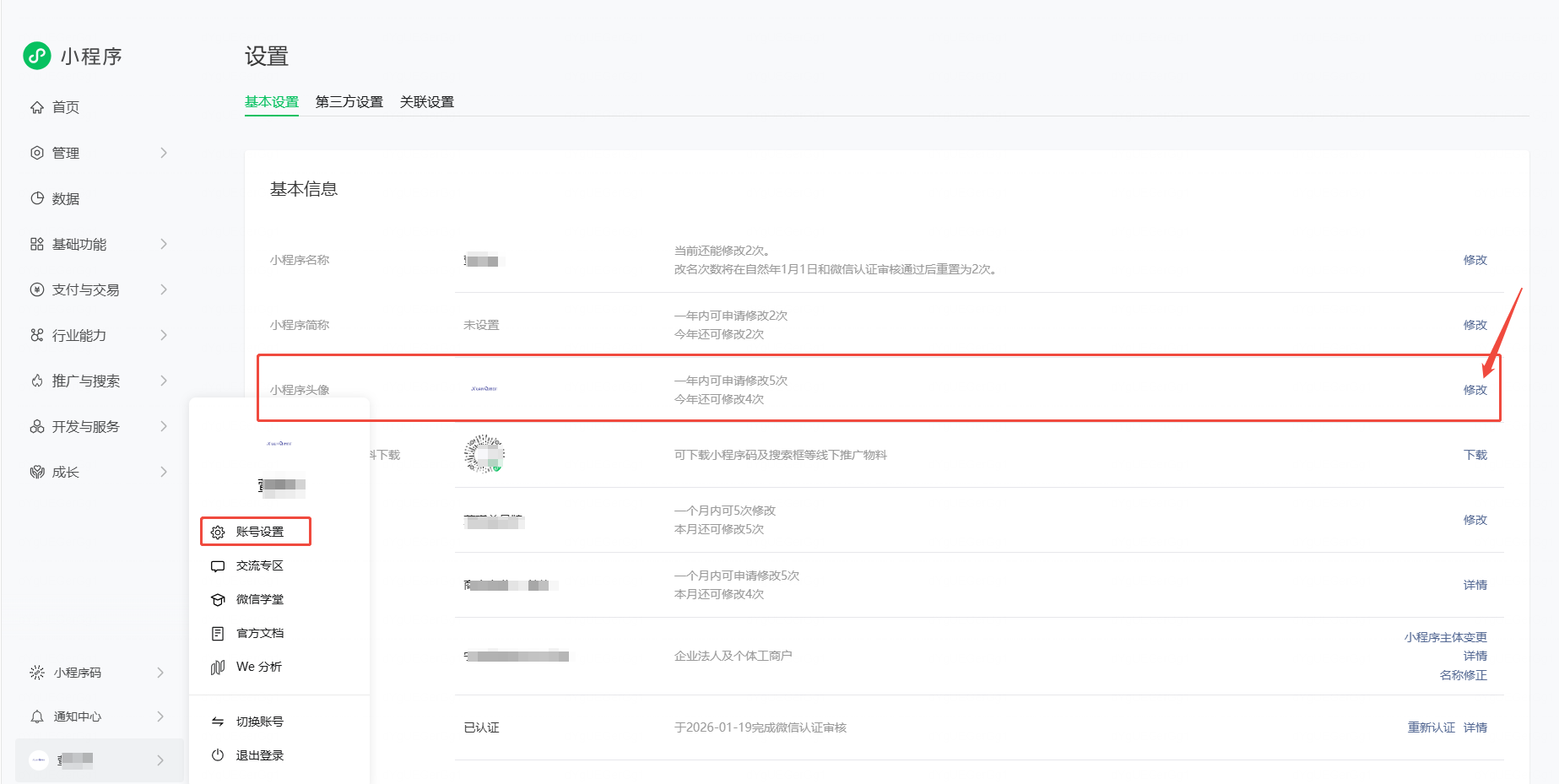 小程序头像一年可申请修改5次